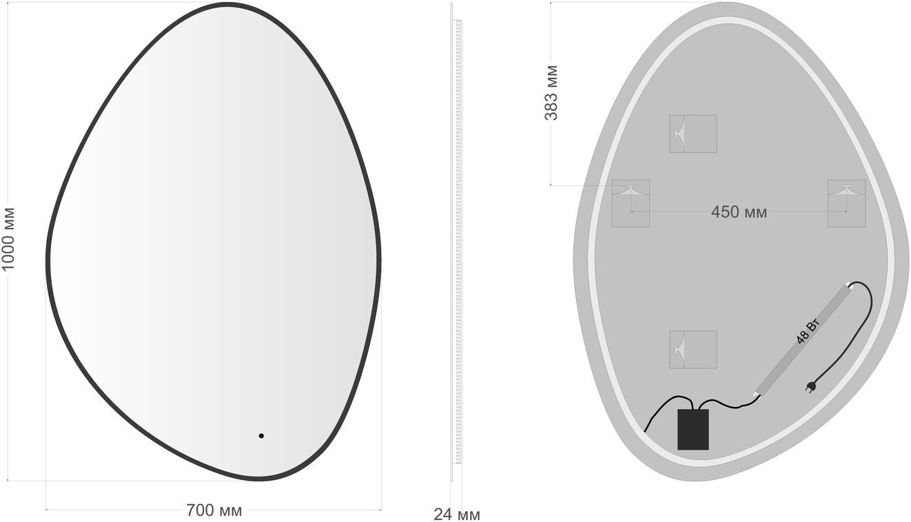 Зеркало Aquanet Контур 700х1000 LED TX ассиметричное, черный