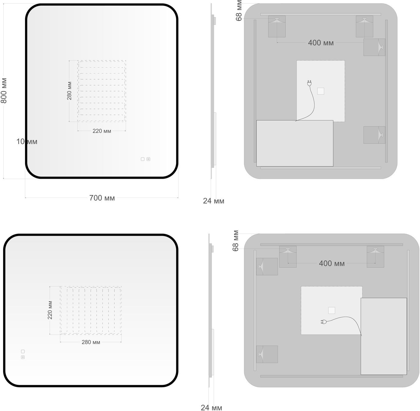 Зеркало Aquanet Контур 800х700 LED TX антипар, черный