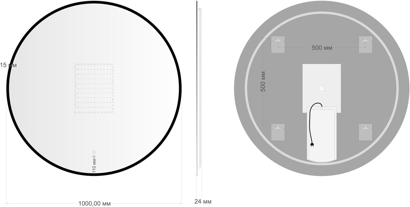 Зеркало Aquanet Контур D 1000 LED TX антипар, черный